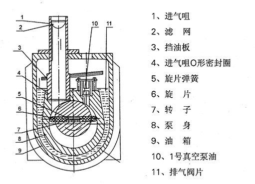 (8)旋片、泵身或泵蓋磨損,間隙過大,應(yīng)進(jìn)行檢查,修整或調(diào)換。